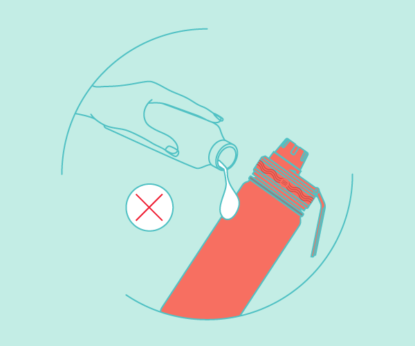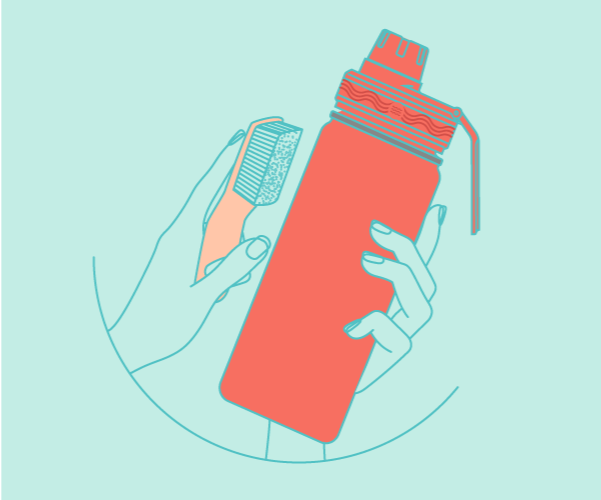 2 – Bicarbonato de Sódio: Para uma limpeza completa e eficaz do interior da garrafa, utilize bicarbonato de sódio: adicione uma colher de chá ao recipiente e complete com água, esfregando com uma bucha macia o interior da garrafa e também da tampa com a solução. Permita que a garrafa descanse durante a noite e, na manhã seguinte, enxágue-a