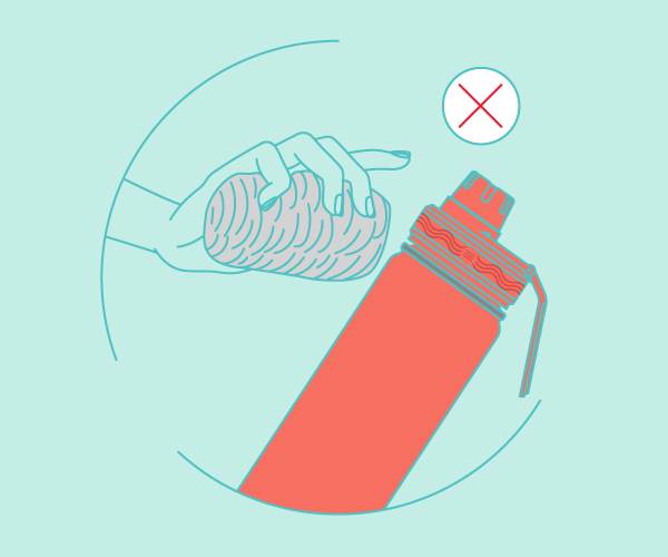 Higienize seu produto com frequência utilizando sabão neutro e uma bucha de limpeza macia, também higienize a tampa e seus aneis de vedação.